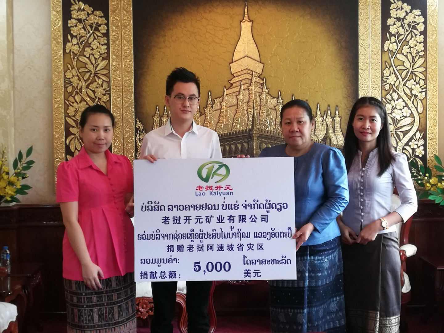 7月31日,萬象辦代表公司向阿速坡災區人民捐助現金5000美金,并轉達了集團領導對災區人民的關懷之情。公司現場也倡議全體員工進行捐助,截止8月1日,全體員工向甘蒙省和阿速坡省抗洪救災捐助現金10,000,000基普。礦產能源部、甘蒙省政府對公司善舉表示感謝,頒發了榮譽證書,并對公司積極履行社會責任給予了高度評價。